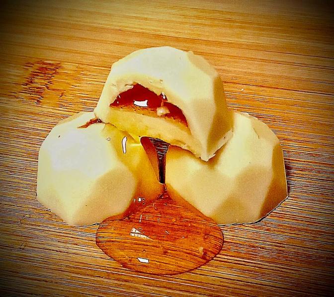 Discover a symphony of taste sensations as you bite into the luscious chocolate shell, revealing a luxuriously smooth honey-flavored center. Nectar Delights are available in three irresistible variations: white chocolate, with its delicate creaminess; milk chocolate, offering a classic and comforting experience; and dark chocolate, boasting an intense and sophisticated richness.